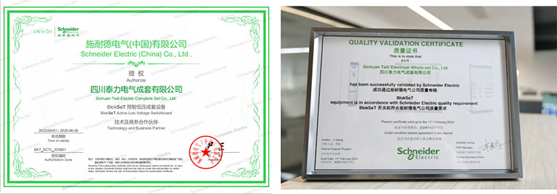 BlokSeT開(kāi)關(guān)柜樣柜確認(rèn)和工廠年審全部通過(guò)施耐德的評(píng)審,四川泰力電氣成套公司已獲取施耐德BlokSeT開(kāi)關(guān)柜授權(quán)質(zhì)量證書(shū),B柜已進(jìn)入正式生產(chǎn)環(huán)節(jié)。