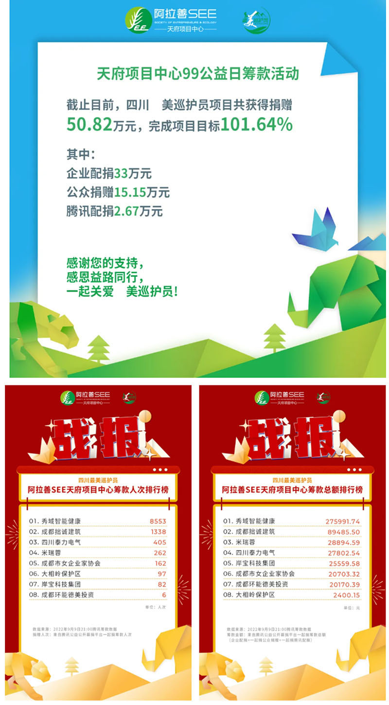 今年是四川泰力電氣成套有限公司,作為阿拉善SEE生態(tài)協(xié)會天府項目中心的會員企業(yè),加入“四川美巡護員”公益項目的第4年。